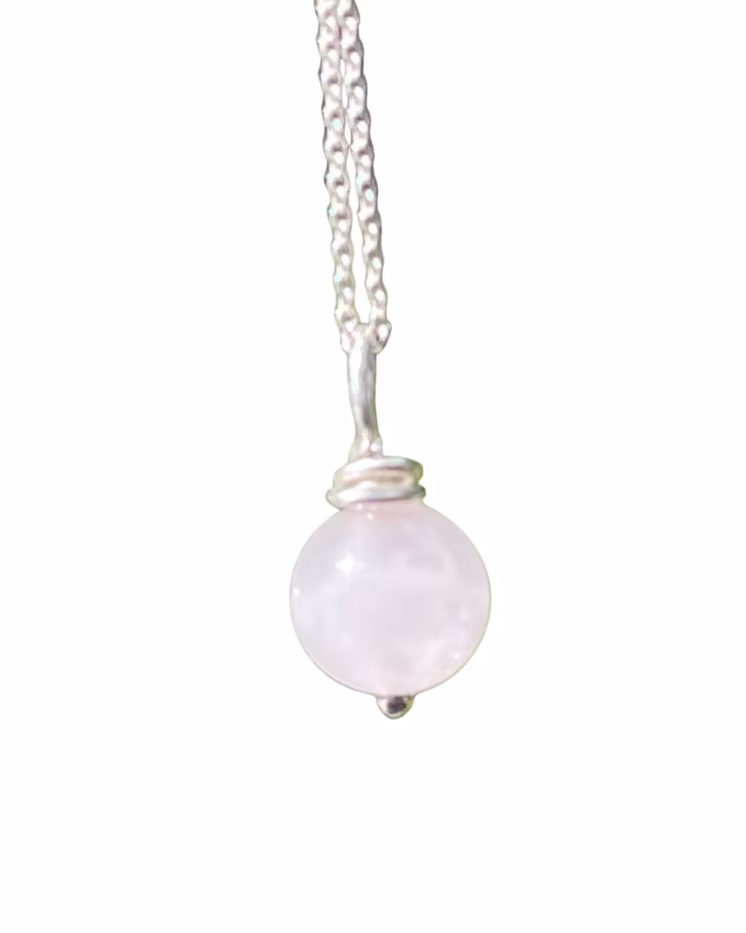 Ljuvligt halssmycke med en pärla i naturlig rosenkvarts. Elegant och vackert i sin enkelhet och passar till alla tillfällen. Hänger i en kedja som är 42cm.